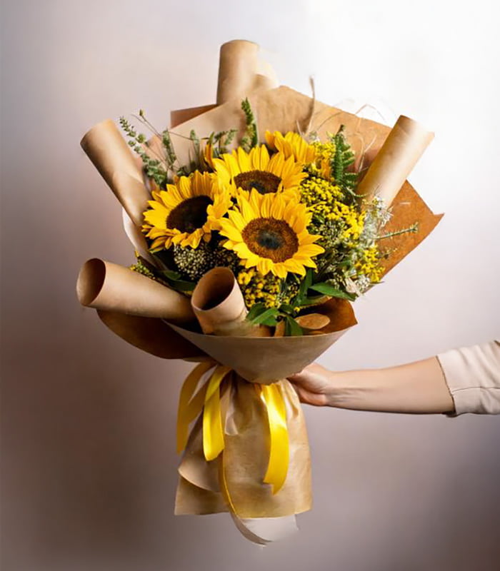 Si ella ama los girasoles amará este precioso ramo, y obvio te amará a tí. Sorprende en Ambato con este lindo bouquet de 5 girasoles.